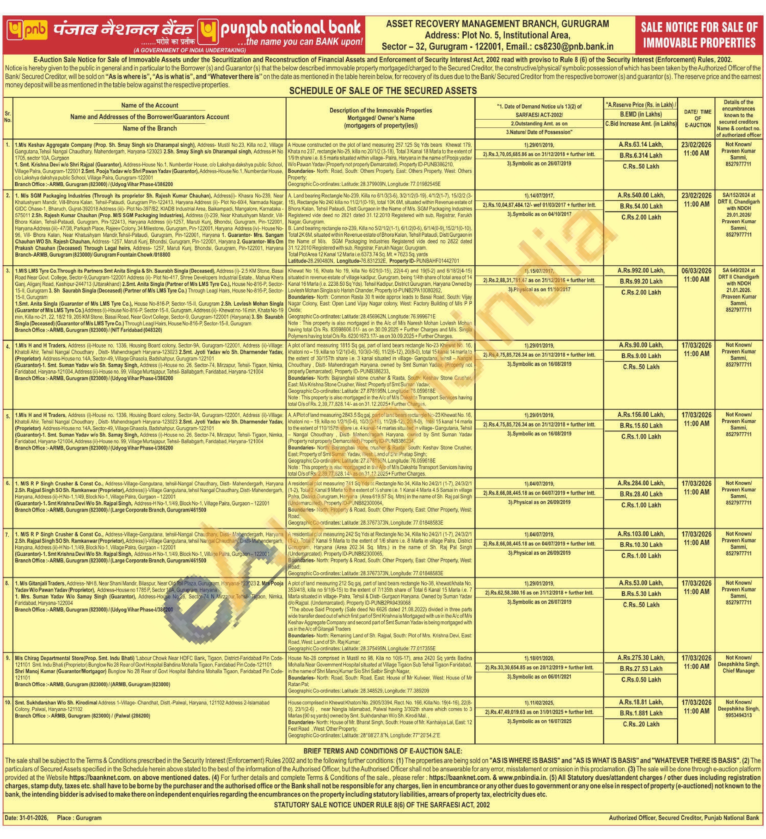 Khewat No 16, Khata No 19, killa No 6/21(0-15), 22(4-4) and 19(5-2) and 6/18/2(4-15) situated in revenue estate of village kadipur, Gurugram, being 1/4th share of total area of 14 Kanal 16 Marla (i.e. 2238.50 Sq Yds). Tehsil Kadipur, District Gurugram, Haryana Owned by Lovlesh Mohan Singla s/o Harish Chander, Property Id-PUNB2PA10080262 Boundaries- North: Common Rasta 30 ft wide approx leads to Basai Road, South: Vijay Nagar Colony, East: Open Land Vijay Nagar colony, West: Factory Building of Mis PP Oxide Geographic Co-ordinates: Latitude: 28. 456962N. Longitude: 76.999671E Note: This property is also mortgaged in the Alc of M/s Naresh Mohan Lovlesh Mohan having total Ols Rs. 83598606.01/- as on 30.09.2025 Further Charges and Mis. Singla Polymers having total Ois Rs. 62301673.17/-ason 30.09.2025+Further Charges.