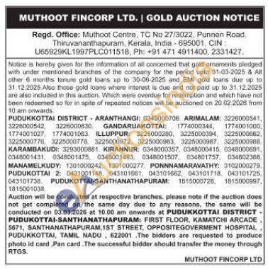 Muthoot Fincorp Ltd Gold Auctions Auction in Pudukkottai