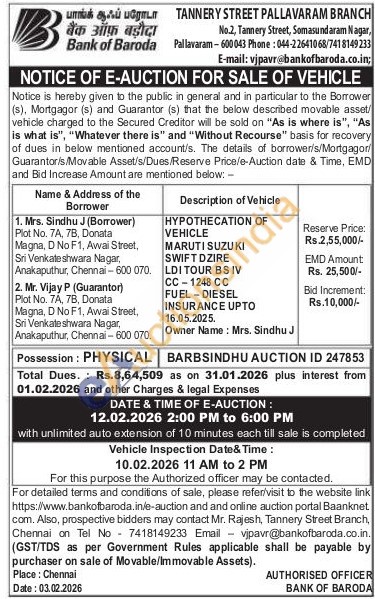 Description of Vehicle : HYPOTHECATION OF VEHICLE MARUTI SUZUKI SWIFT DZIRE LDI TOUR BS IV CC-1248 CC FUEL-DIESEL INSURANCE UPTO 16.05.2025. Owner Name: Mrs. Sindhu J