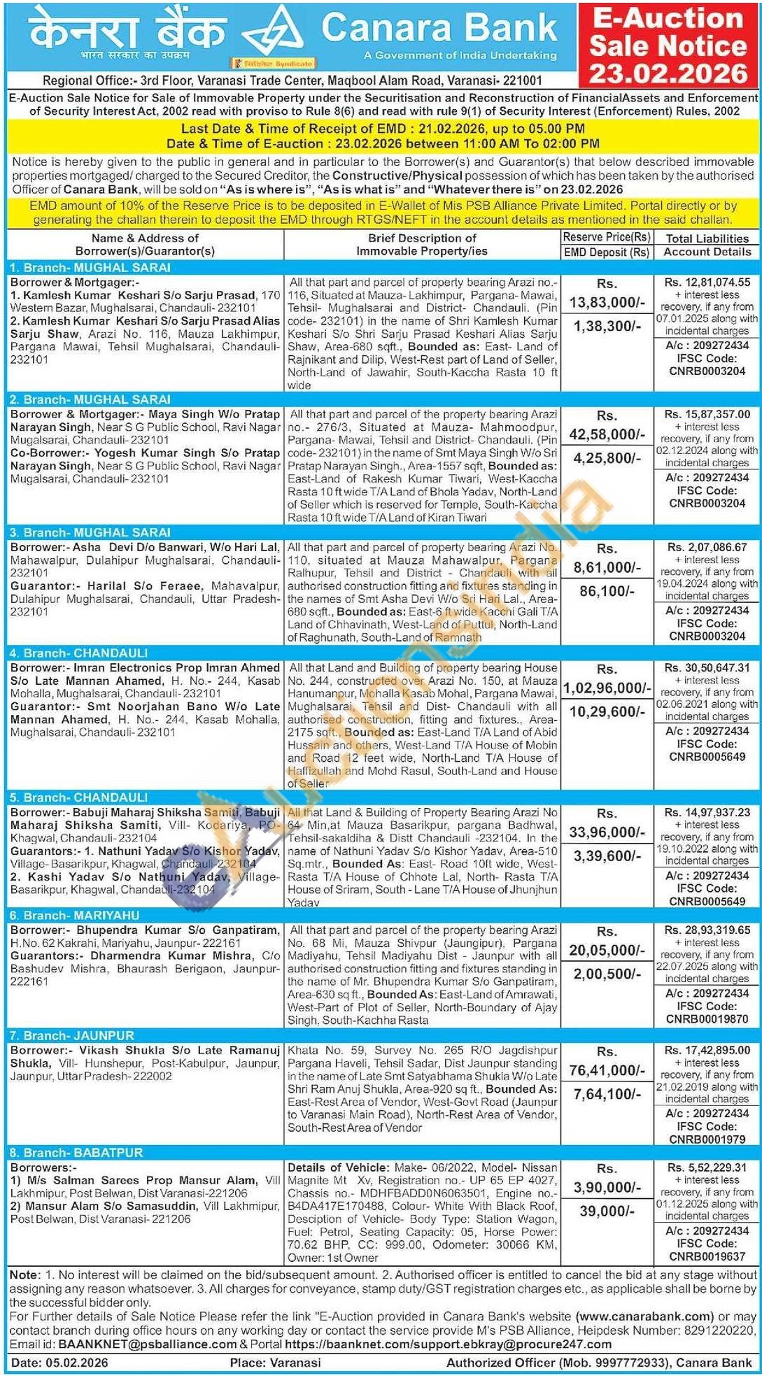 All that part and parcel of property bearing Arazi No. 110, situated at Mauza Mahawalpur, Pargana Ralhupur, Tehsil and District Chandauli with all authorised construction fitting and fixtures standing in the names of Smt Asha Devi W/o Sri Hari Lal., Area-680 sqft., Bounded as: East-6 ft wide Kacchi Gali T/A Land of Chhavinath, West-Land of Puttul, North-Land of Raghunath, South-Land of Ramnath