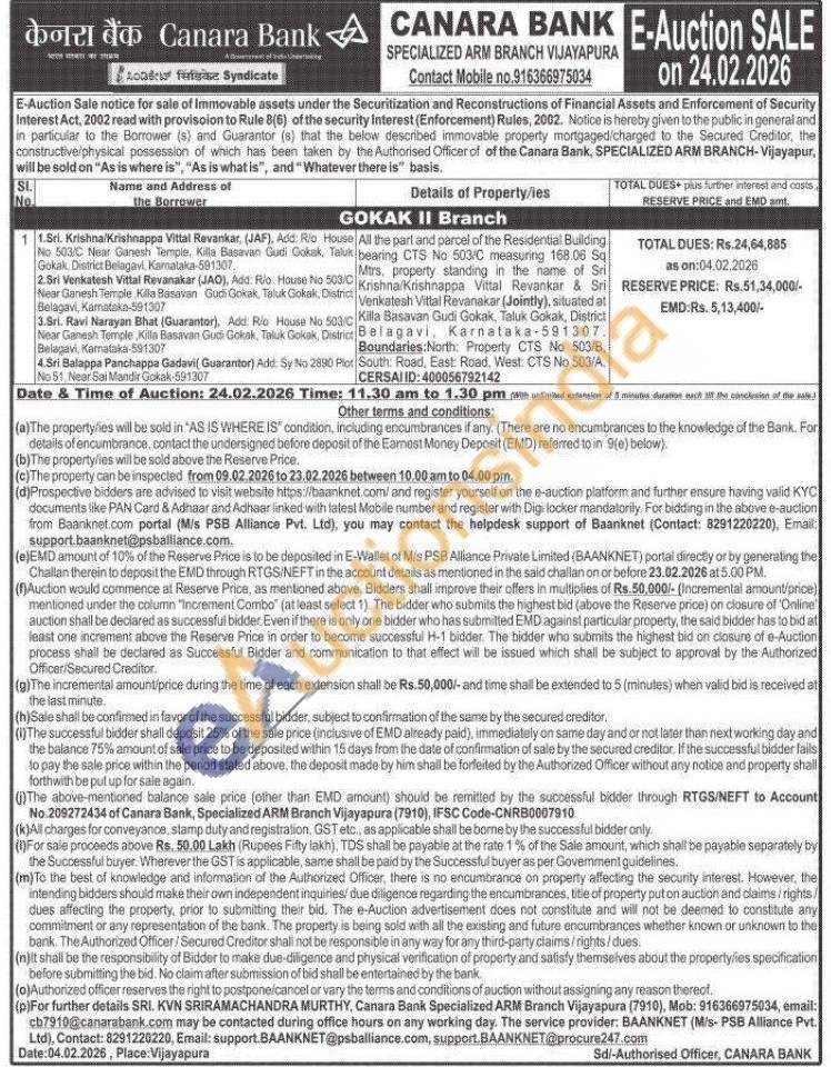 All the part and parcel of the Residential Building bearing CTS No 503/C measuring 168.06 Sq Mtrs, property standing in the name of Sri Krishna Krishnappa Vittal Revankar & Sri Venkatesh Vittal Revanakar (Jointly), situated at Killa Basavan Gudi Gokak, Taluk Gokak, District Belagavi, Karnataka-591307