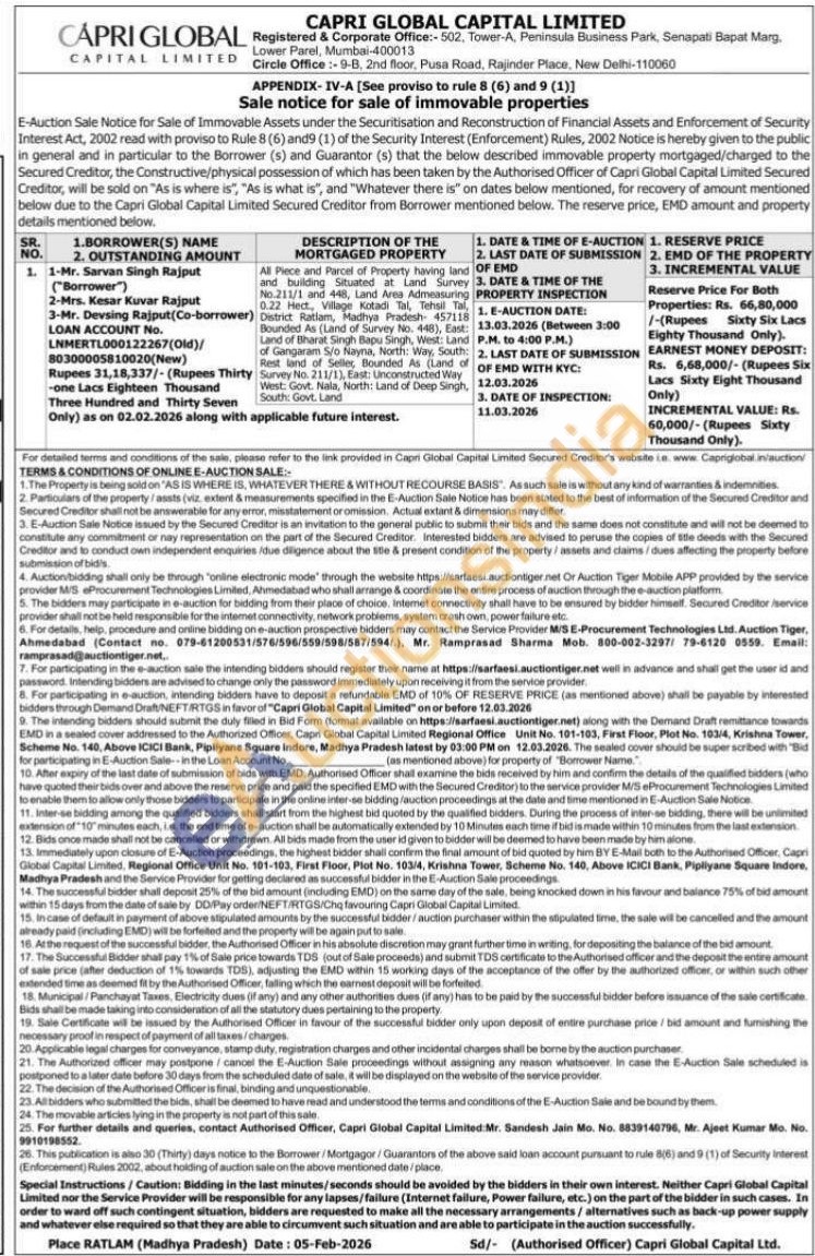Authorised Officer Mr. Sandesh Jain Mobile No : 8839140796 / Mr. Ajeet Kumar Mobile No : 9910198552.