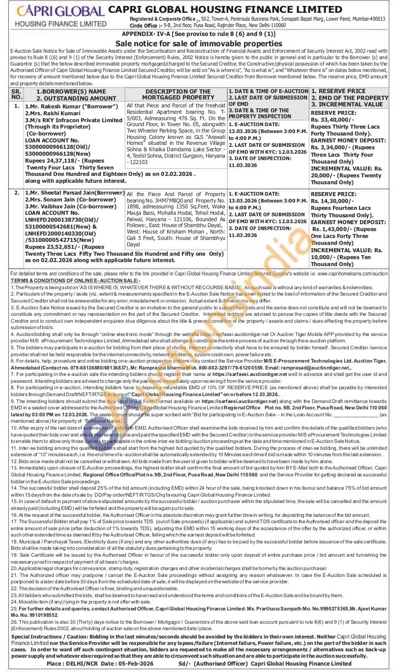 Authorised Officer : Ms. Prarthana Sampath Mobile No : 9990275365 / Mr. Ajeet Kumar Mobile No : 9910198552.