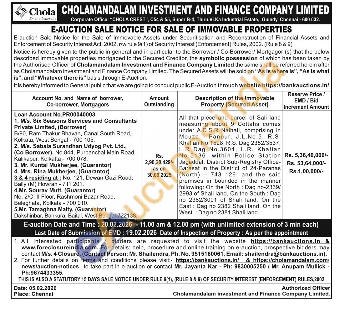 All that piece and parcel of Sali land measuring about 9 Cottahs comes under A.D.S.R Naihati, comprising in Mouza Panpur, J.L.No.5, R.S. Khatian No. 1528, R.S. Dag 2382/3537, L.R Dag No.3604, L.R. Khatian No.5136, within Police Station Jagaddal, District Sub-Registry Office-Barasat in the District of 24-Paranas (North) 743 126, and the said premises in bounded in the manner following: On the North Dag no-2339/2993 of Shali land, On the South: Dag no 2382/3001 of Shali land, On the East: Dag no 2382 Shali land, On the West: Dag no 2381 Shali land