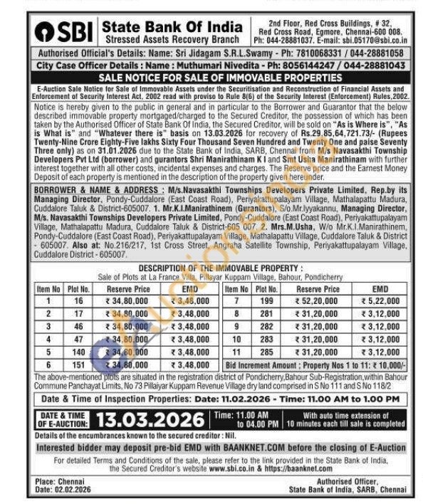 Sale of Plots at La France Villa, Pillayar Kuppam Village, Bahour, Pondicherry