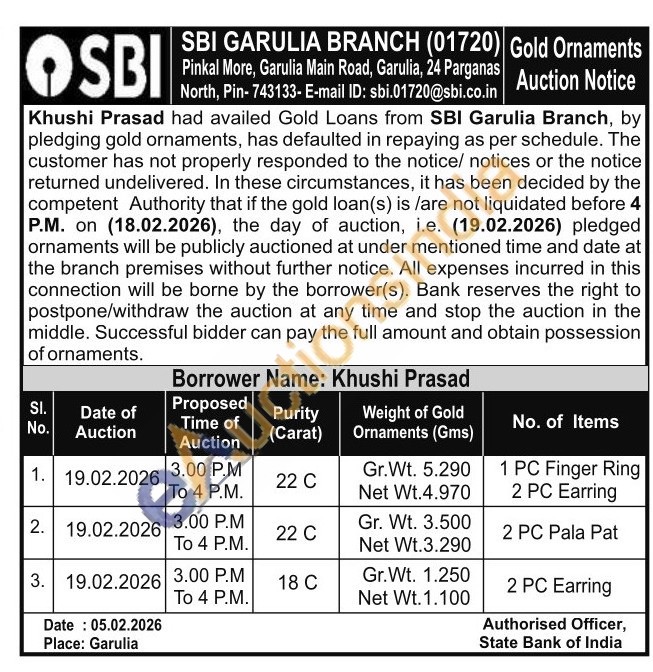 State Bank of India Gold Auctions Auction in North 24 Parganas