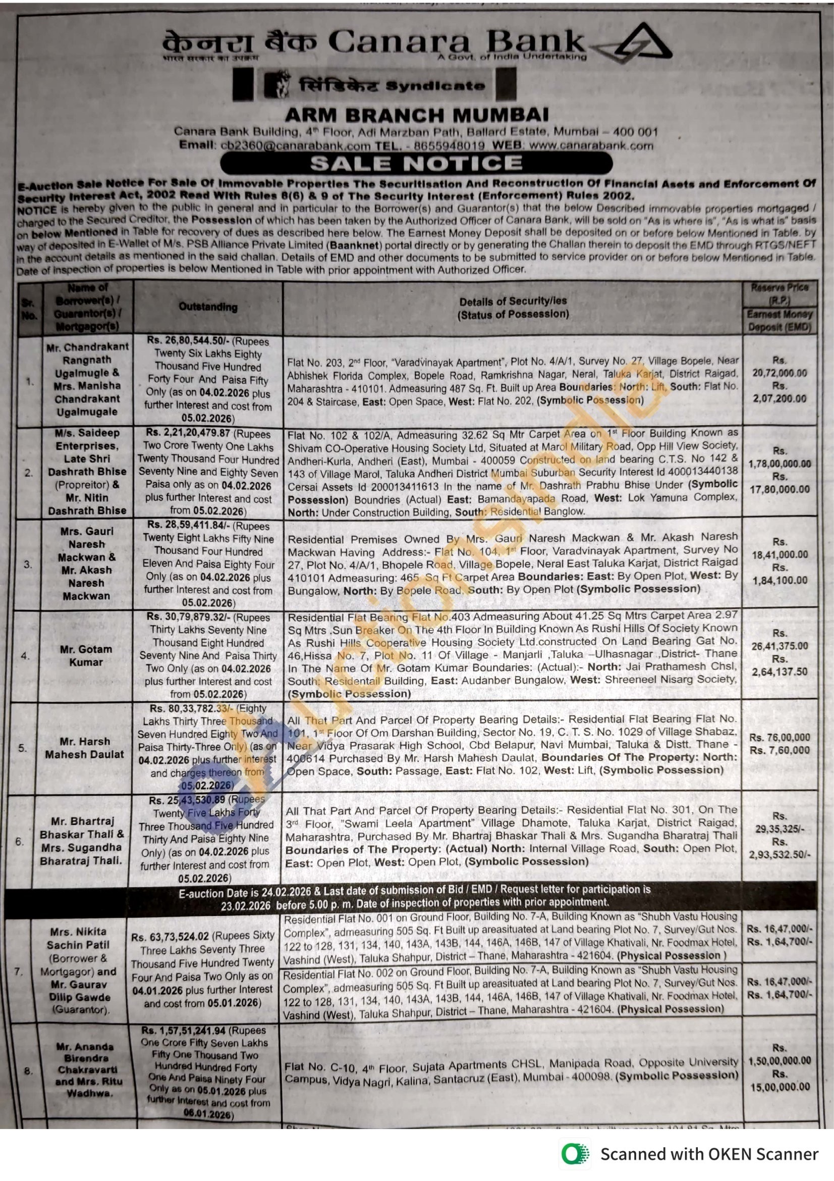 Residential Premises Owned By Mrs. Gauri Naresh Mackwan & Mr. Akash Naresh Mackwan Having Address:- Flat No. 104, 1 Floor, Varadvinayak Apartment, Survey No 27, Plot No. 4/A/1, Bhopele Road, Village Bopele, Neral East Taluka Karjat, District Raigad 410101 Admeasuring: 465 Sq Ft Carpet Area Boundaries: East: By Open Plot, West: By Bungalow, North: By Bopele Road, South: By Open Plot (Symbolic Possession)