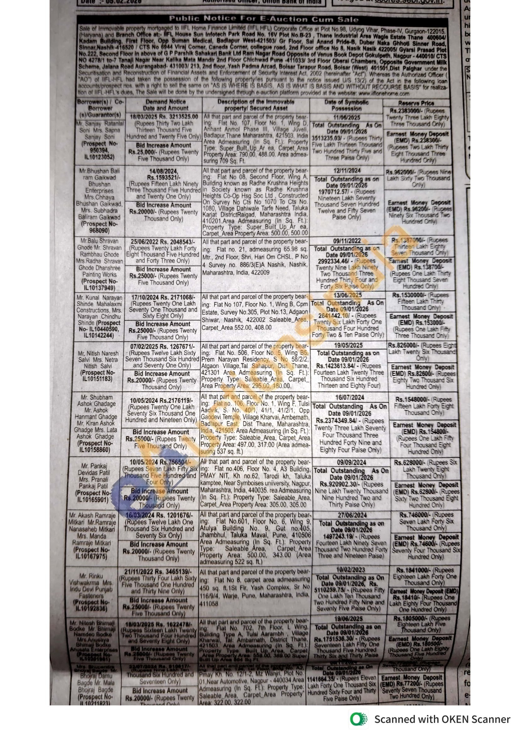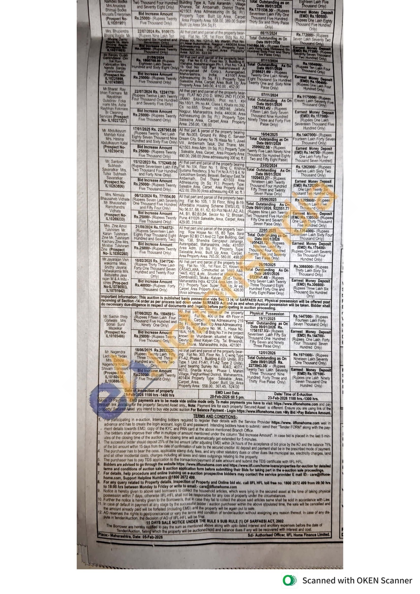 All that part and parcel of the property bear-ing: Flat No. 126, 1st Floor, Bldg No. A2, Pmay Kh. No. 12/1-2, Mz Wanjri, Plot No. 01, Near Automotive, Nagpur - 440034 Area Admeasuring (In Sq. FL) Property Type Saleable Area, Carpet Area Property Area: 322.00, 322.00