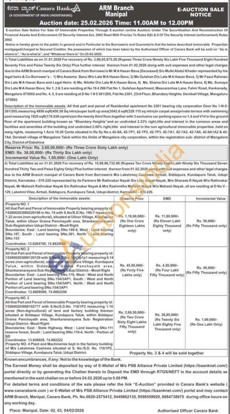All that Part and Parcel of immovable Property bearing property id: 152600203000120129 with S.No/S.D.No. 154/3p1p1 measuring 0.14 acres (non-agricultural), situated at Siddapura pura Village, Kundapura Taluk, within Siddapura Grama Panchayath area, Shankaranarayana Sub-Registration Udupi District-Mooll Right Boundaries: East: Land bearing 5No.178, West West and North Portion of Land bearing SNo. 154/3AP1, South Wust and North Portion of Land bearing SNo.154/JAP1, North West and North Portion of Land bearing SNo. 154/3AP1 Coordinates: 13.6609500, 74.0062250