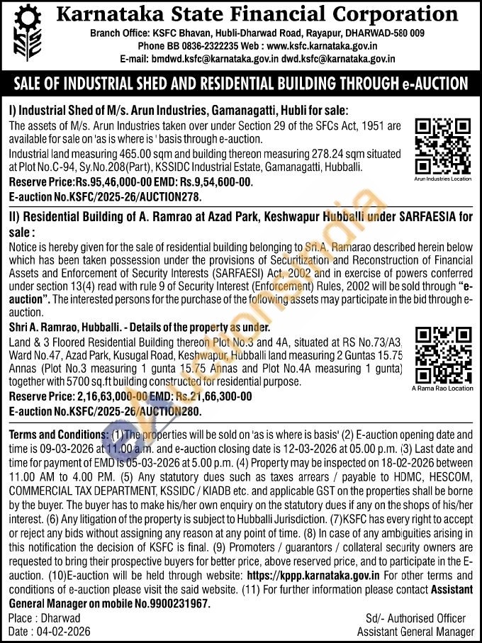 Industrial land measuring 465.00 sqm and building thereon measuring 278.24 sqm situated at Plot No.C-94, Sy. No. 208 (Part), KSSIDC Industrial Estate, Gamanagatti, Hubballi