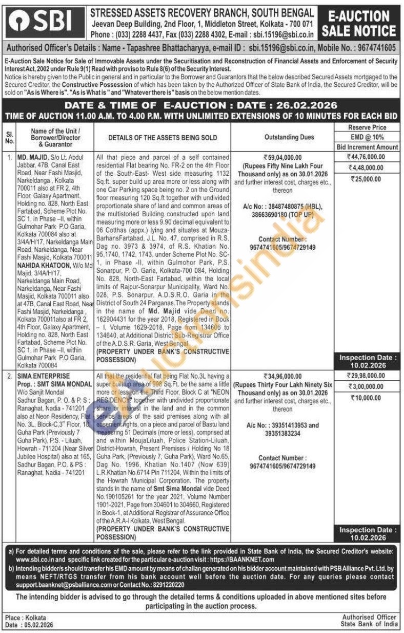 All that the residential flat being Flat No.3L having a super built up area of 998 Sq. Ft, be the same a little more or less, on the Third Floor, Block Cat "NEON RESIDENCY" together with undivided proportionate share or interest in the land and in the common service areas of the said premises along with all easement rights, on a piece and parcel of Bastu land measuring 51 Decimals (more or less), comprised at and within MoujaLiluah, Police Station-Liluah, District-Howrah, Present Premises / Holding No 18 Guha Park, (Previously 7, Guha Park), Ward No.65, Dag No. 1996, Khatian No.1407 (Now 639) LR Khatian No.6714 Pin 711204, Within the limits of the Howrah Municipal Corporation. The property stands in the name of Smt Sima Mondal vide Deed No. 190105261 for the year 2021, Volume Number 1901-2021, Page from 304601 to 304660, Registered in Book-1, at Additional Registrar of Assurance Office of the A.R.A- Kolkata, West Bengal.