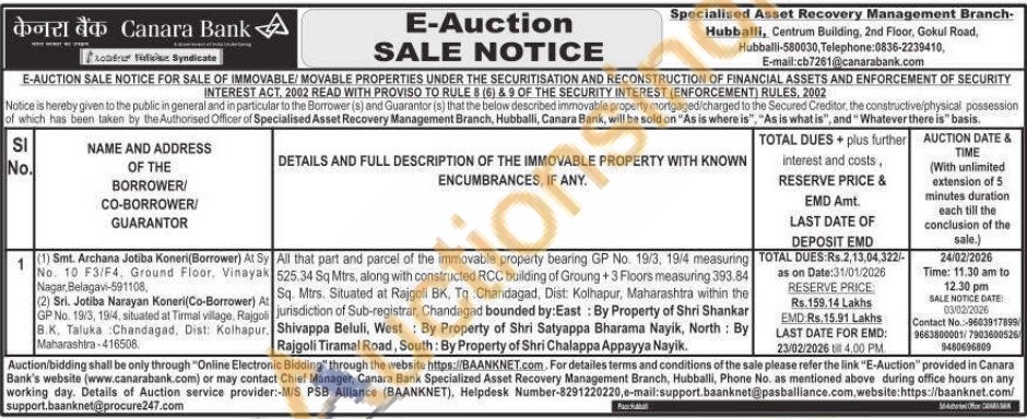 All that part and parcel of the immovable property bearing GP No. 19/3, 19/4 measuring 525.34 Sq Mtrs, along with constructed RCC building of Groung +3 Floors measuring 393.84 Sq. Mtrs. Situated at Rajgoli BK, Tq Chandagad, Dist: Kolhapur, Maharashtra within the jurisdiction of Sub-registrar, Chandagad bounded by: East: By Property of Shri Shankar Shivappa Beluli, West By Property of Shri Satyappa Bharama Nayik, North: By Rajgoli Tiramal Road, South: By Property of Shri Chalappa Appayya Nayik