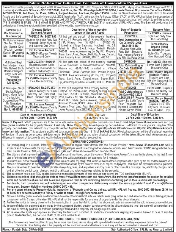 All that part and parcel of the property bearing Plot Pvt. mo. 25min-26min, Property bearing Khasra No. 951, 95//2/1,9 5//9 min, Khewat No. 1531, 1532. 1537, Hadbast No. 344, Situated at Miran Kot Kalan, Abadi RB Estate (White Avenue), Tehsil & Distt. Amritsar, Punjab, 143302 Area Adm. (In Sq. Ft) Property Type Land Area, Built Up Area, Carpet Area Property Area 2362.50.1125.00, 1012. 50