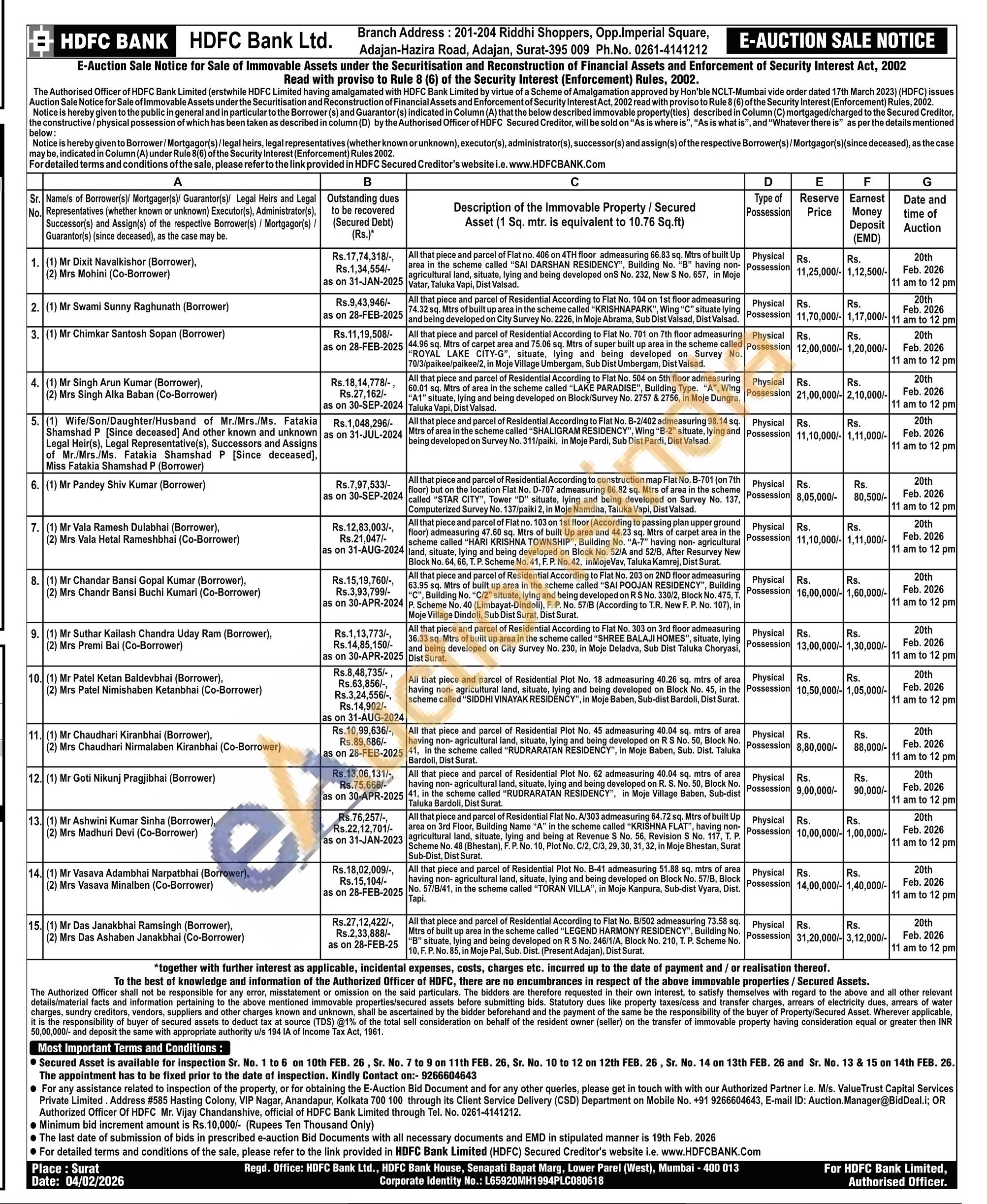 All that piece and parcel of Residential According to construction map Flat No. B-701 (on 7th floor) but on the location Flat No. D-707 admeasuring 66.82 sq. Mtrs of area in the scheme called "STAR CITY", Tower "D" situate, lying and being developed on Survey No. 137, Computerized Survey No. 137/paiki 2, in Moje Namdha, Taluka Vapi, Dist Valsad.