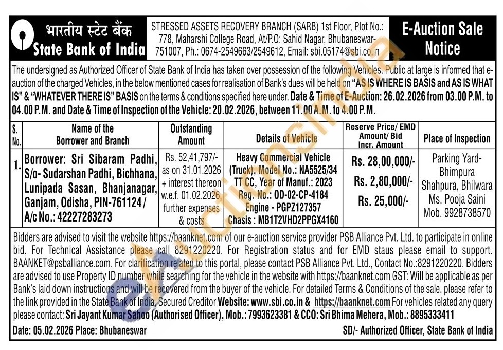 Contact Number : 0674-2549663/2549612, Email: sbi.05174@sbi.co.in