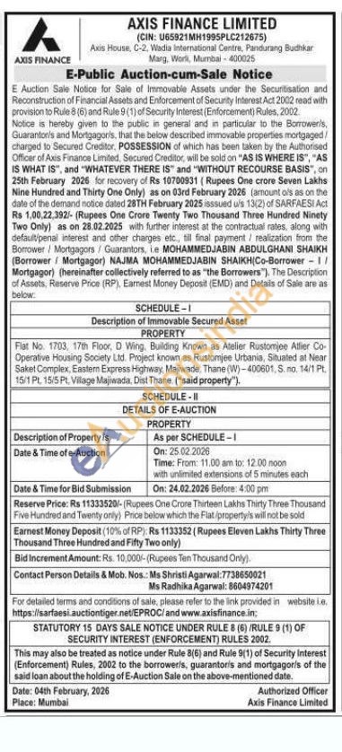 Flat No. 1703, 17th Floor, D Wing, Building Known as Atelier Rustomjee Atlier Co-Operative Housing Society Ltd. Project known as Rustomjee Urbania, Situated at Near Saket Complex, Eastern Express Highway, Majiwade, Thane (W)-400601, S. по, 14/1 Pt. 15/1 Pt. 15/5 Pt. Village Majiwada, Dist Thane ("said property").