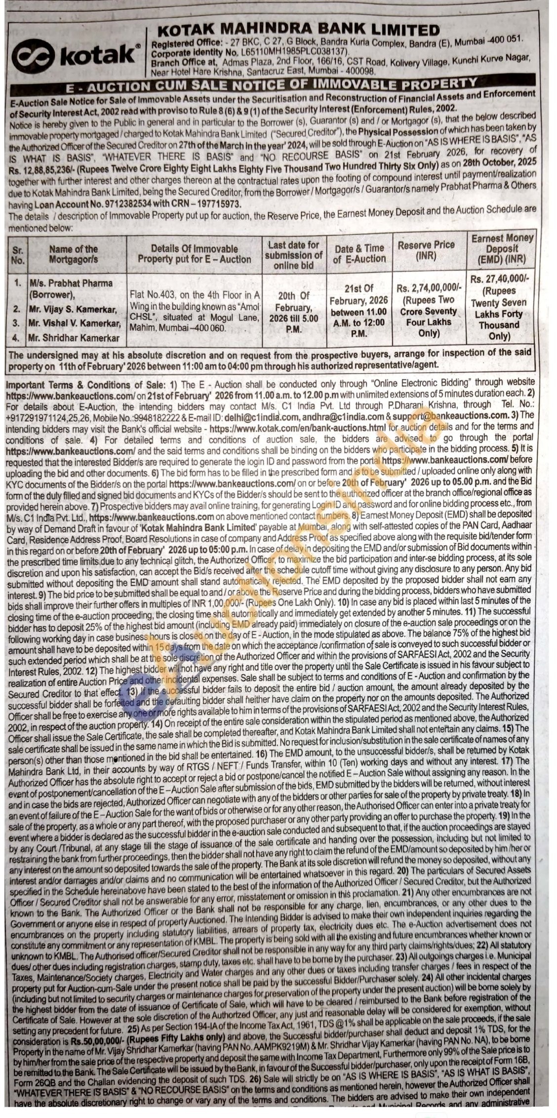 Flat No.403, on the 4th Floor in A Wing in the building known as "Amol CHSL", situated at Mogul Lane, Mahim, Mumbai-400060.