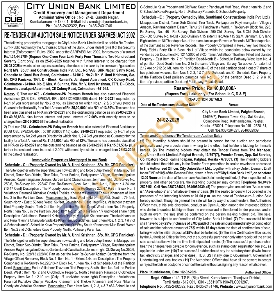 Malappuram District, Tanur Sub-District, Tirur Taluk, Pariyapuram Rayirimangalam Village /Amsom, Rayirimangalam Desam, Tanur 21 Panchayat / Ward, 1 Re-Survey Block No. 228, Re-Survey No. 46- Re-Survey Sub-Division 250-Old Survey No.-6-Old Sub-Division 250- Old Survey No. 6-Old - Sub-Division 4.15 extent Hec./Are 415 Sq.M. Jenmam, Dry land Right an tenure Nil Thandaper No. of the executant as per Revenue Records, Nil Thandaper No. of the claimant as per Revenue Records. The Property Comprised in Re-survey Two Hundred Forty Eight / Forty Six in Block No.1 of Village within the boundaries below owned by the vendor as per Document No. 1214/2000 of SRO, Tanur. Vellathoor Thazhum Filled and planted Property East Item No. 7 of Partition Deed-North B Schedule Pathway-West Item No. 4 of partition Deed-South Item No. 2 In the same Village and Survey No above, An extent of 2.12 Are or 212 Sq.Mt. item No. 1 of Schedule - B of the said partition deed 1 out of 7 share of two point one two ares, Item Nos. 1, 2, 3, 4 & 7 of A-Schedule and C - Schedule Kavu Property of the Partition Deed pullisery paramba Item No. 5, 6 of the partition Deed 8, 2, 9 & 10 item of previous partition Deed and Public way, Private Road.