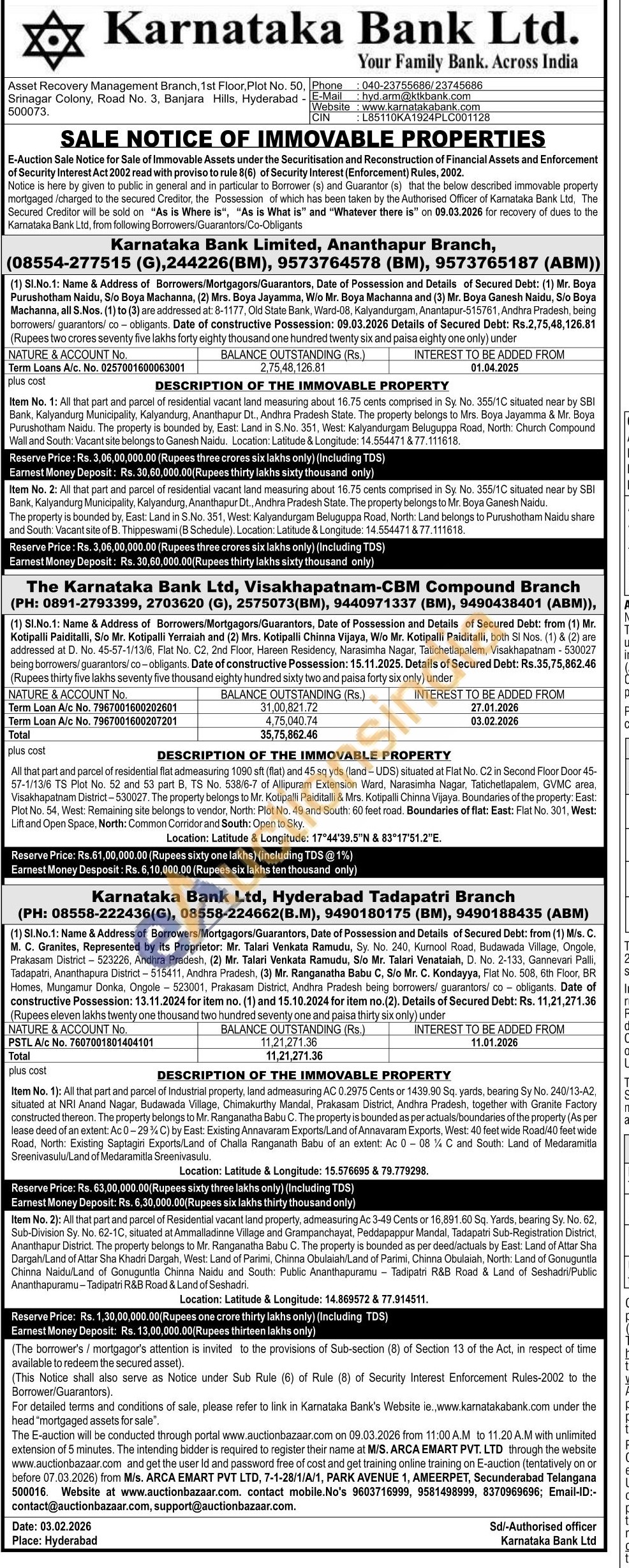 Item No. 2): All that part and parcel of Residential vacant land property, admeasuring Ac 3-49 Cents or 16,891.60 Sq. Yards, bearing Sy. No. 62, Sub-Division Sy. No. 62-1C, situated at Ammalladinne Village and Grampanchayat, Peddapappur Mandal, Tadapatri Sub-Registration District, Ananthapur District. The property belongs to Mr. Ranganatha Babu C. The property is bounded as per deed/actuals by East: Land of Attar Sha Dargah/Land of Attar Sha Khadri Dargah, West: Land of Parimi, Chinna Obulaiah/Land of Parimi, Chinna Obulaiah, North: Land of Gonuguntla Chinna Naidu/Land of Gonuguntla Chinna Naidu and South: Public Ananthapuramu Tadipatri R&B Road & Land of Seshadri/Public Ananthapuramu-Tadipatri R&B Road & Land of Seshadri.