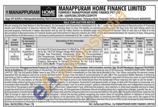 An Extent Of 3 Cents Equivalent To 1306/8 Sq. Ft Of Land Comprised in Re Sy No. 138/3 Of Palugal Village With Building Door No. 5/52/1, Of Palugal Toen Panchayat, Vilavancode Taluk, PD Kannumamoodu, Dist-Kanyakumari, Tamil Nadu, Pin: 629170 East-Property Belonging To Sreedharan Pillai, West-Property Belonging To Mandhara, South-Property Belonging To Selvaraj (Pathway As Per V.A.DO Sketch 03.11.2023), North-Property Belonging To Mandhara