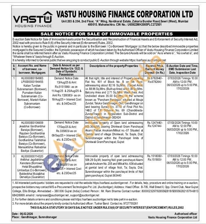 Immovable property of open land admeasuring 509.29 Sq.Mt, bearing Noli gram panchayat Akarni patrak Anukram No. 205 and Milkat No. 636 situated at gamtal land of village Noli, Ta; Sayla, Dist Surendranagar within the panchayat limits of Noli gram panchayat, Gujrat-363440