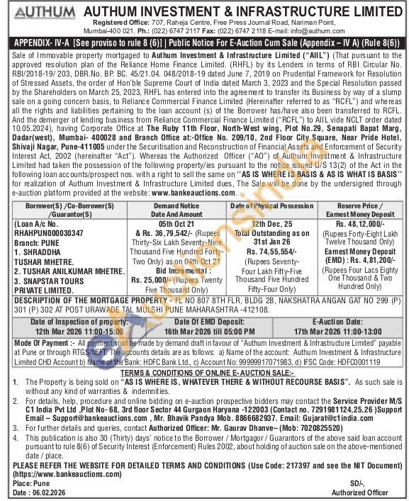 Authorized Officer: Mr. Gaurav Dhanve-(Mobile No : 7020825520)