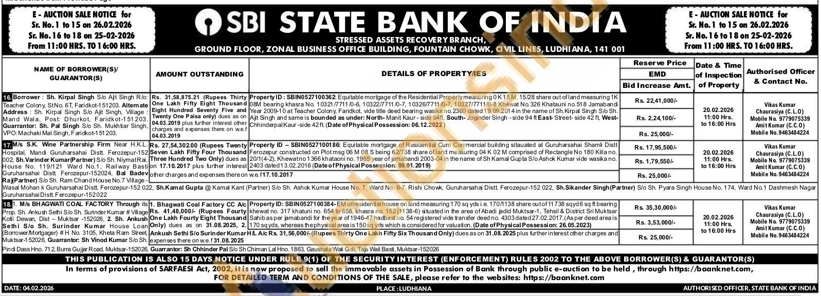 Property ID-SBIN200058319681: Property measuring 13 Marta ie. 13/294 share out of property measuring 14K 14M comprised in khasra No. 2717(14-14) situated at Phagwara Sharki, Tehsil Phagwara, Distt Kapurthala as per Title deed No. 1722 dated 21.11.1988 in the name of Sh Chaman Lal Bhatti. Bounded as under: East: Karnail Singh, West: Street 10 feet wide, North: Gurdial Singh, South: Gurmeet. (PHYSICAL POSSESSION)