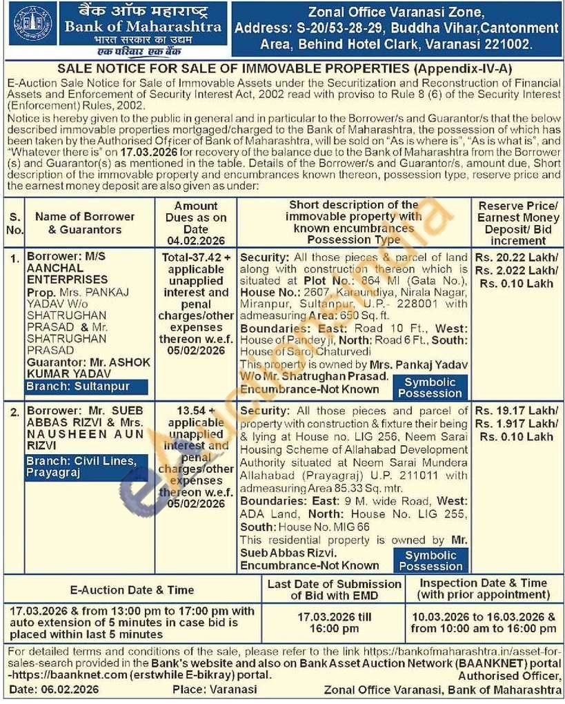 Security: All those pieces and parcel of property with construction & fixture their being & lying at House no. LIG 256, Neem Sarai Housing Scheme of Allahabad Development Authority situated at Neem Sarai Mundera Allahabad (Prayagraj) U.P. 211011 with admeasuring Area 85.33 Sq. mtr.