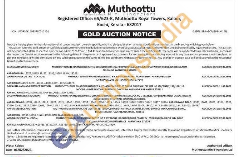 Muthoottu Mini Financiers Limited Gold Auctions Auction in Kochi