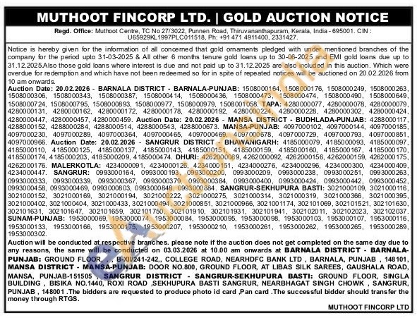 Muthoot Fincorp Ltd Gold Auctions Auction in Thiruvananthapuram