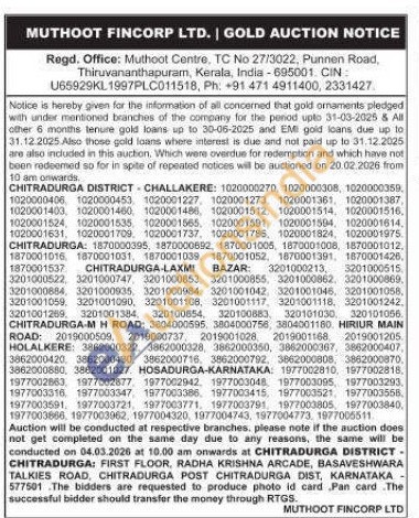 Muthoot Fincorp Ltd Gold Auctions Auction in Thiruvananthapuram