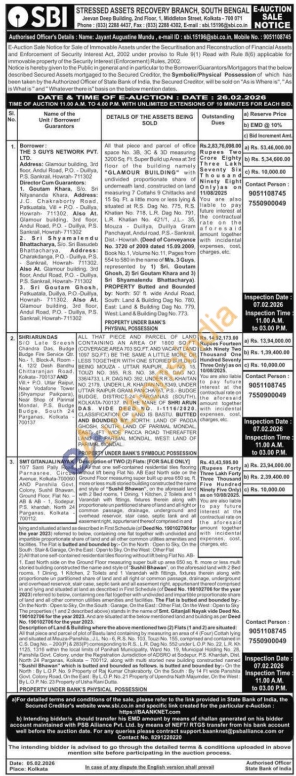 All that piece and parcel of office space No. 38, 3C & 3D measuring 3200 Sq. Ft. Super Build up Area at 3rd floor of the building namely "GLAMOUR BUILDING with undivided proportionate share of underneath land, constructed on land measuring 7 Cottahs 9 Chittacks and 15 Sq. Ft. a little more or less lying & situated at R.S. Dag No. 775, RS. Khatian No. 718, L.R. Dag No. 791, L.R. Khatian No. 421/1, JL- 35, Mouza Duillya, Duillya Gram Panchayat, Andul road, P.S.-Sankrail, Dist.-Howrah (Deed of Conveyance No. 3720 of 2009 dated 15.09.2009, Book No. 1. Volume No. 11. Pages from 554 to 580 in the name of M/s. 3 Guys, represented by 1) Sri. Goutam Ghosh, 2) Sri Goutam Khara and 3) Sri Shyamalendu Bhattacharya). PROPERTY Butted and Bounded by: North: 50° ft. wide Andul Road, South: Land & Building Dag No. 760, East: Land & Building Dag No. 779, West: Land & Building Dag No. 773.
