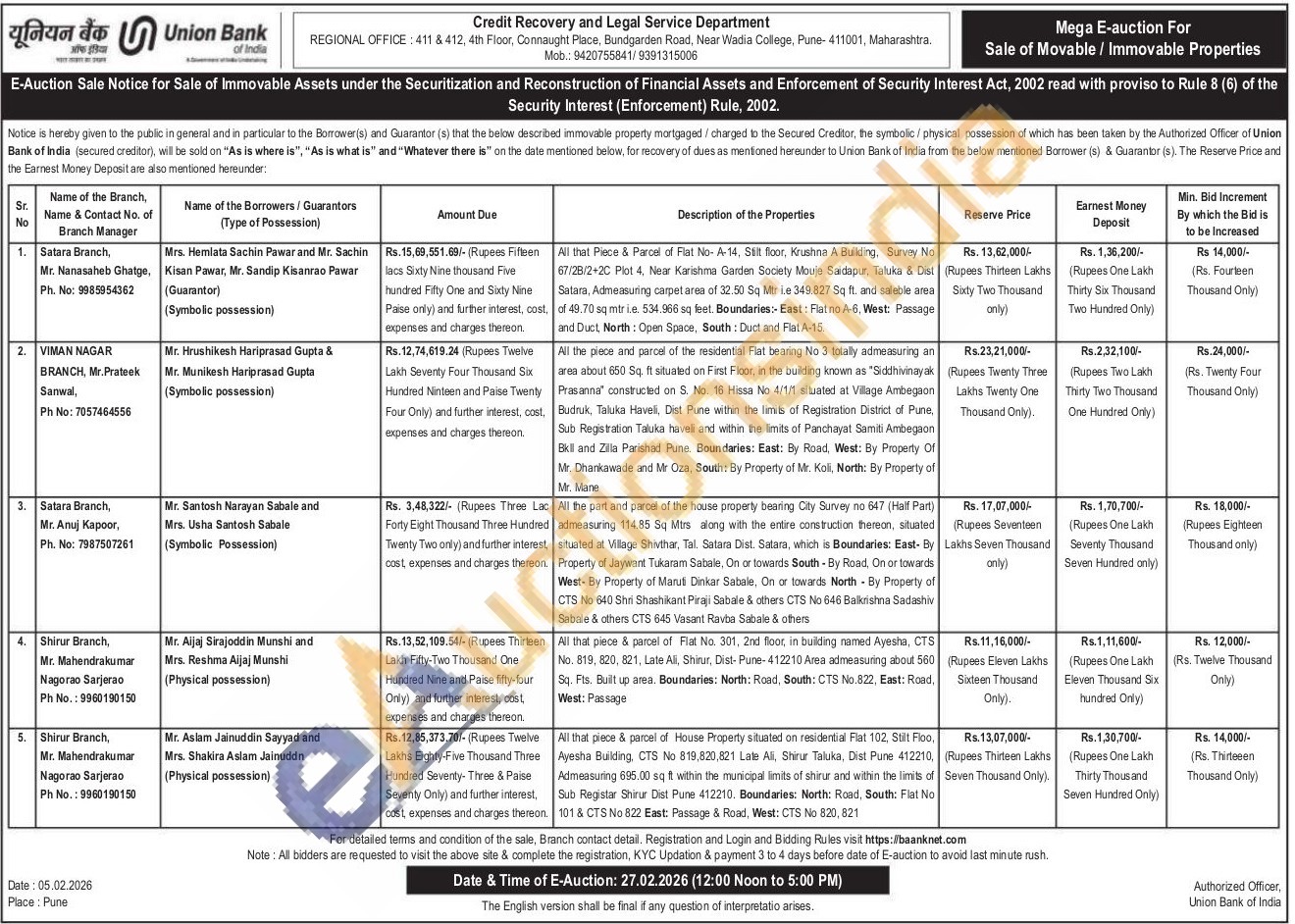 All that piece & parcel of House Property situated on residential Flat 102, Stilt Floo, Ayesha Building, CTS No 819,820,821 Late Ali, Shirur Taluka, Dist Pune 412210, Admeasuring 695.00 sq ft within the municipal limits of shirur and within the limits of Sub Registar Shirur Dist Pune 412210. Boundaries: North: Road, South: Flat No 101 & CTS No 822 East: Passage & Road, West: CTS No 820, 821