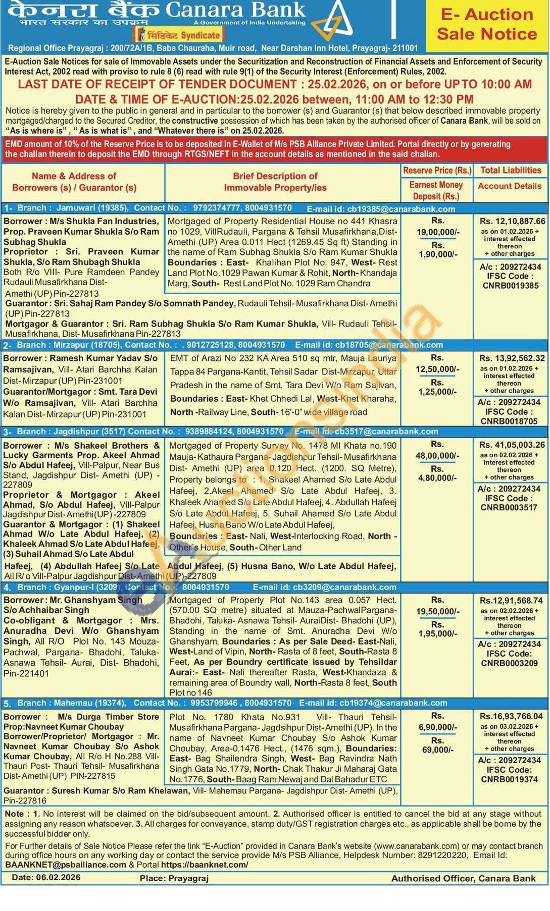 Mortgaged of Property Residential House no 441 Khasra no 1029, Vill Rudauli, Pargana & Tehsil Musafirkhana, Dist-Amethi (UP) Area 0.011 Hect (1269.45 Sq ft) Standing in the name of Ram Subhag Shukla S/o Ram Kumar Shukla Boundaries: East- Khalihan Plot No. 947, West- Rest Land Plot No. 1029 Pawan Kumar & Rohit, North-Khandaja Marg, South- Rest Land Plot No. 1029 Ram Chandra