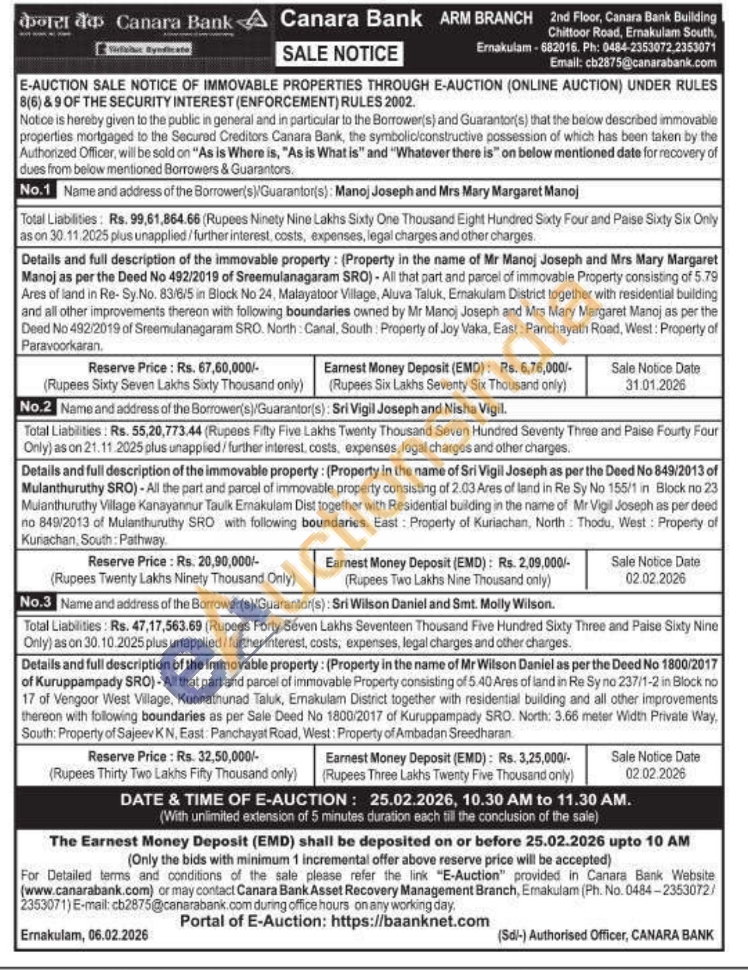 0484-2353072,2353071 Email: cb2875@canarabank.com