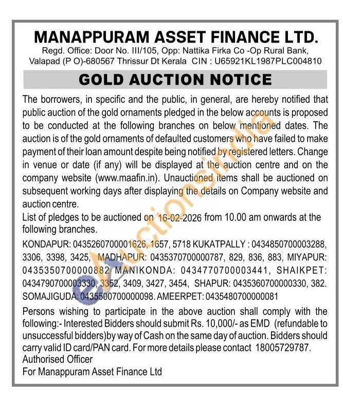 Manappuram Asset Finance Ltd Gold Auctions Auction in Hyderabad