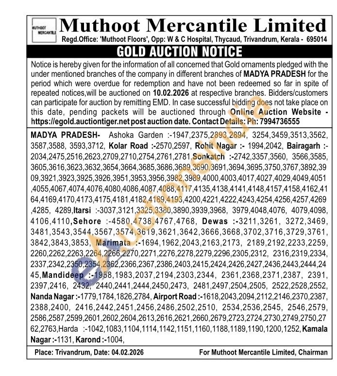 Muthoot Mercantile Limited Gold Auctions Auction in Trivandrum