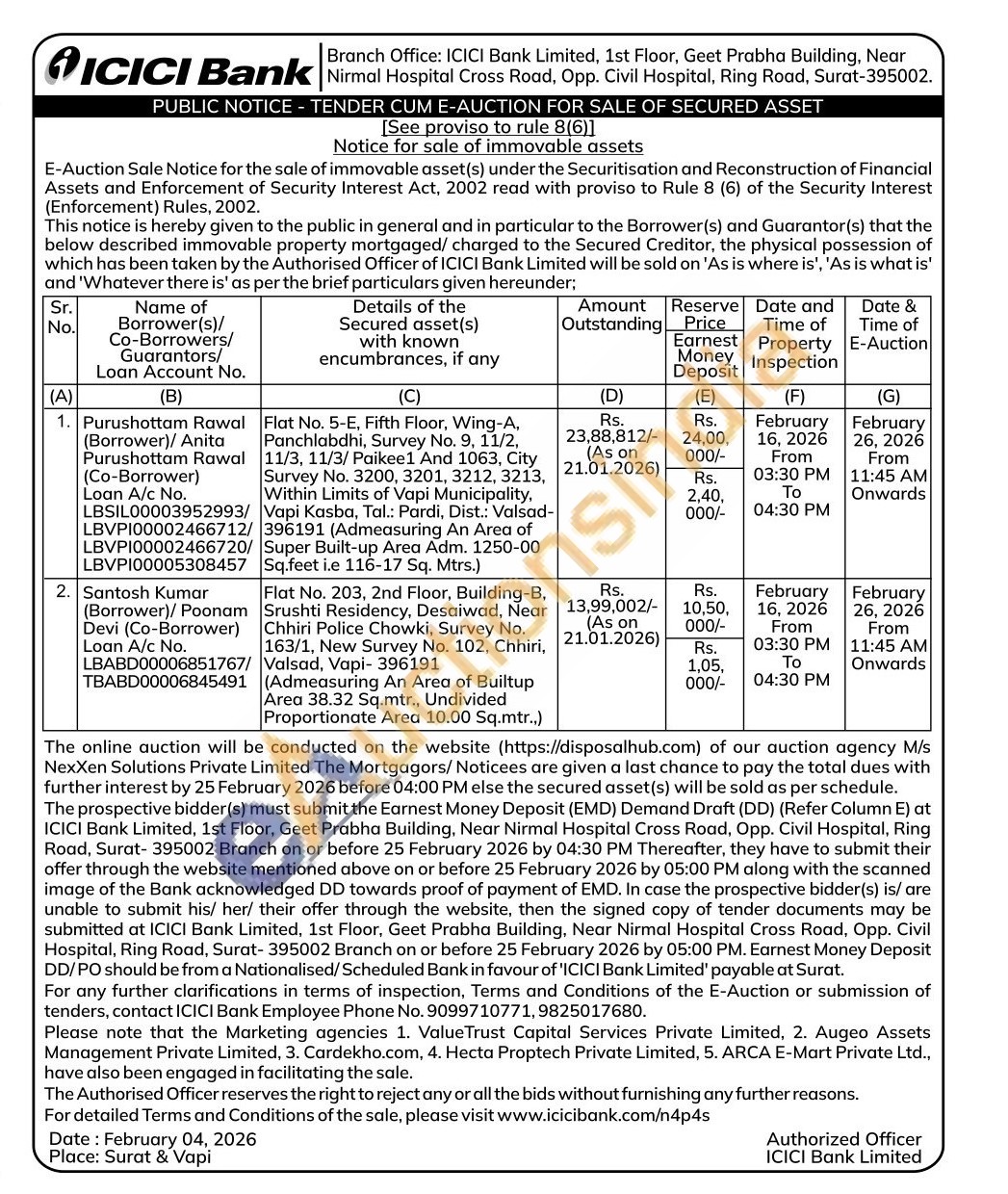 Flat No. 203, 2nd Floor, Building-B, Srushti Residency, Desaiwad, Near Chhiri Police Chowki, Survey No. 163/1, New Survey No. 102, Chhiri, Valsad, Vapi- 396191 (Admeasuring An Area of Builtup Area 38.32 Sq.mtr., Undivided Proportionate Area 10.00 Sq.mtr.,)