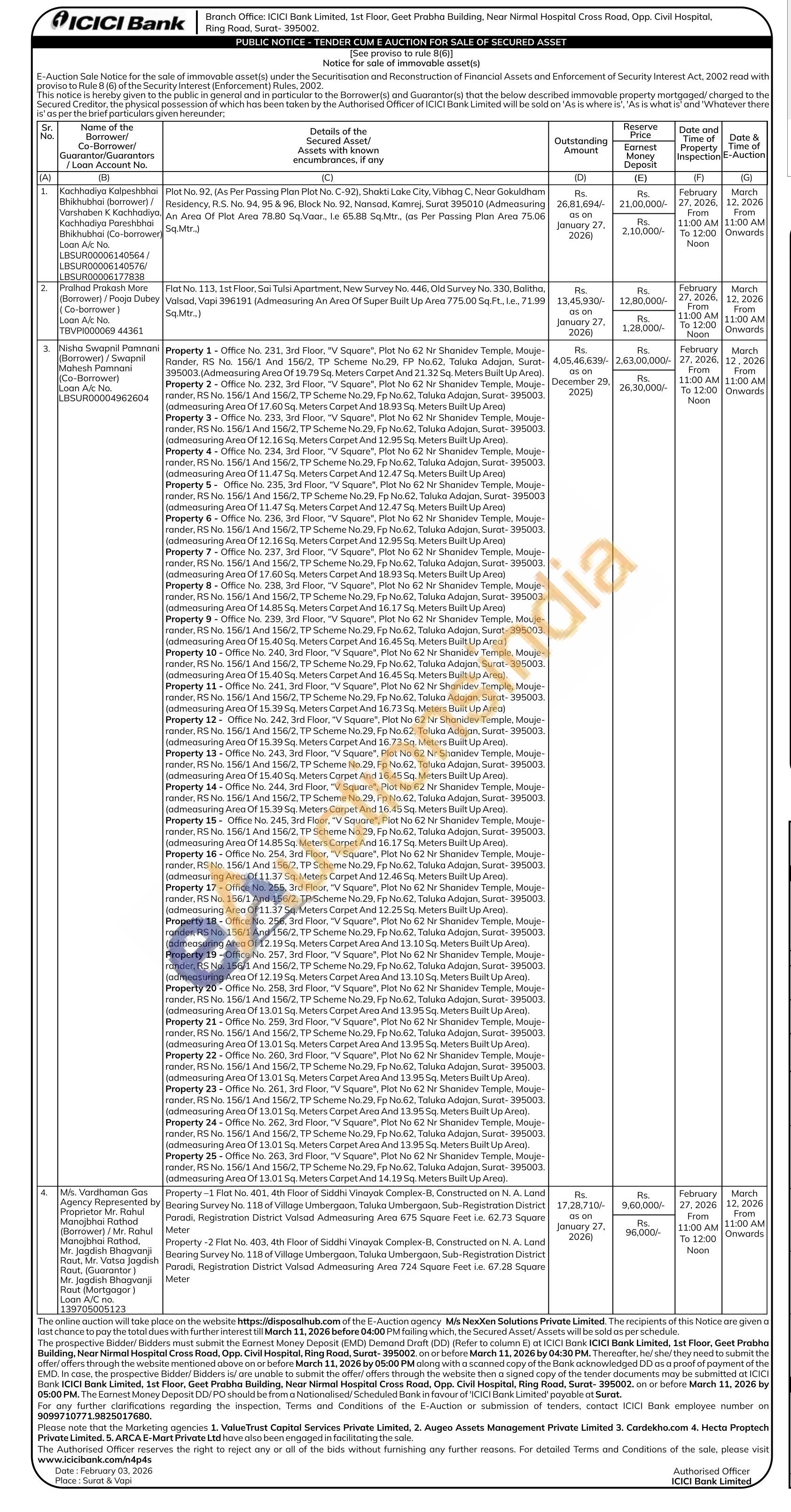 Flat No. 113. 1st Floor, Sai Tulsi Apartment. New Survey No. 446, Old Survey No. 330, Balitha, Valsad, Vapi 396191 (Admeasuring An Area Of Super Built Up Area 775.00 Sq.Ft., Le, 71.99 Sq.Mtr.)