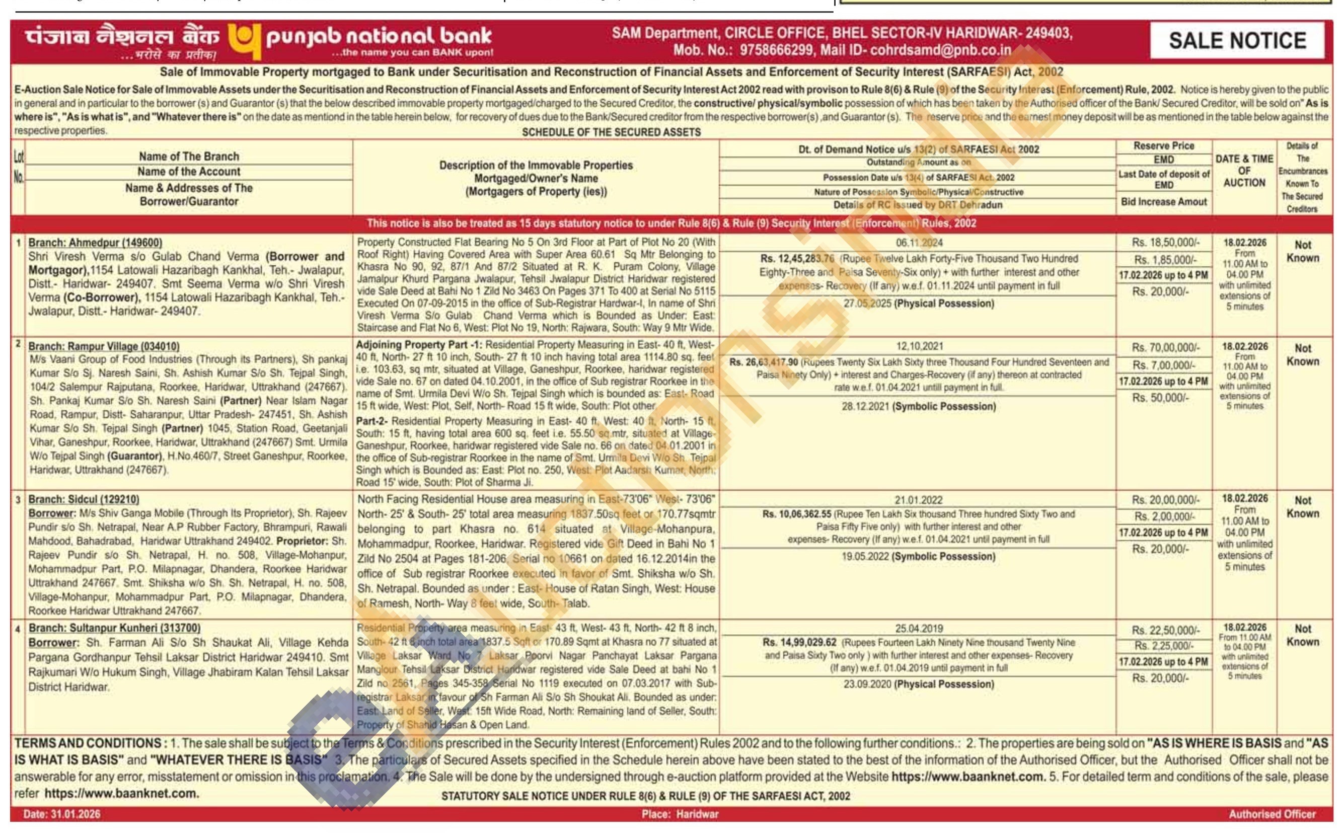 Property Constructed Flat Bearing No 5 On 3rd Floor at Part of Plot No 20 (With Roof Right) Having Covered Area with Super Area 60.61 Sq Mtr Belonging to Khasra No 90, 92, 87/1 And 87/2 Situated at R. K. Puram Colony, Village Jamalpur Khurd Pargana Jwalapur, Tehsil Jwalapur District Haridwar registered vide Sale Deed at Bahi No 1 Zild No 3463 On Pages 371 To 400 at Serial No 5115 Executed On 07-09-2015 in the office of Sub-Registrar Hardwar-I, In name of Shri Viresh Verma Sio Gulab Chand Verma which is Bounded as Under: East: Staircase and Flat No 6, West: Plot No 19, North: Rajwara, South: Way 9 Mtr Wide