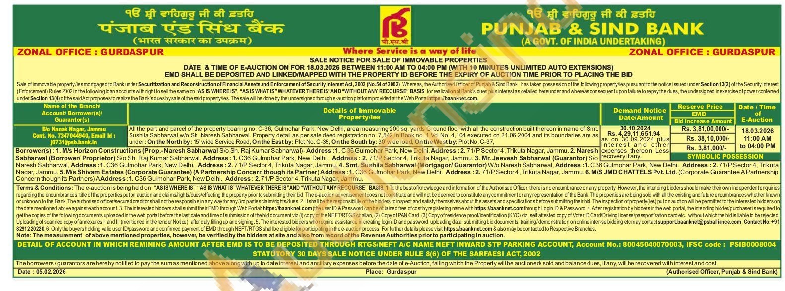All the part and parcel of the property bearing no. C-36. Gulmoher Park, New Delhi, area measuring 200 sq. yards Ground floor with all the construction Sushila Sabher w/o Sh. Naresh Sabharwal. Property detall as per sale deed registration no. 7.542 in Book 1 Voi No. 4.104 executes under: On the North by: 15' wide Service Roal. On the East by: Plot No. C-35. On the South by: 30' wide mad, On the West by: Plot No. C-37, thereon in name of Smt 2004 Its boundaries are as