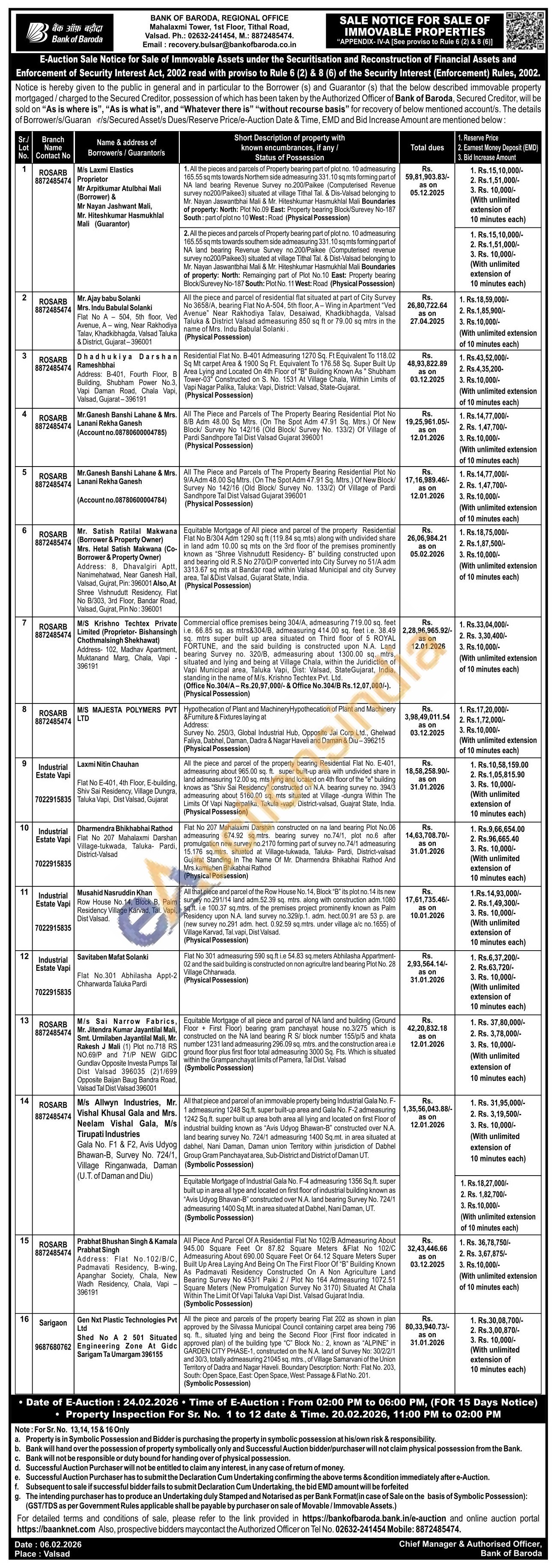 All the piece and parcel of residential flat situated at part of City Survey No 3658/A, bearing Flat No A-504, 5th floor, A-Wing in Apartment "Ved Avenue Near Rakhodiya Talav, Desaiwad, Khadkibhagda, Valsad Taluka & District Valsad admeasuring 850 sq ft or 79.00 sq mtrs in the name of Mrs. Indu Babulal Solanki. (Physical Possession)