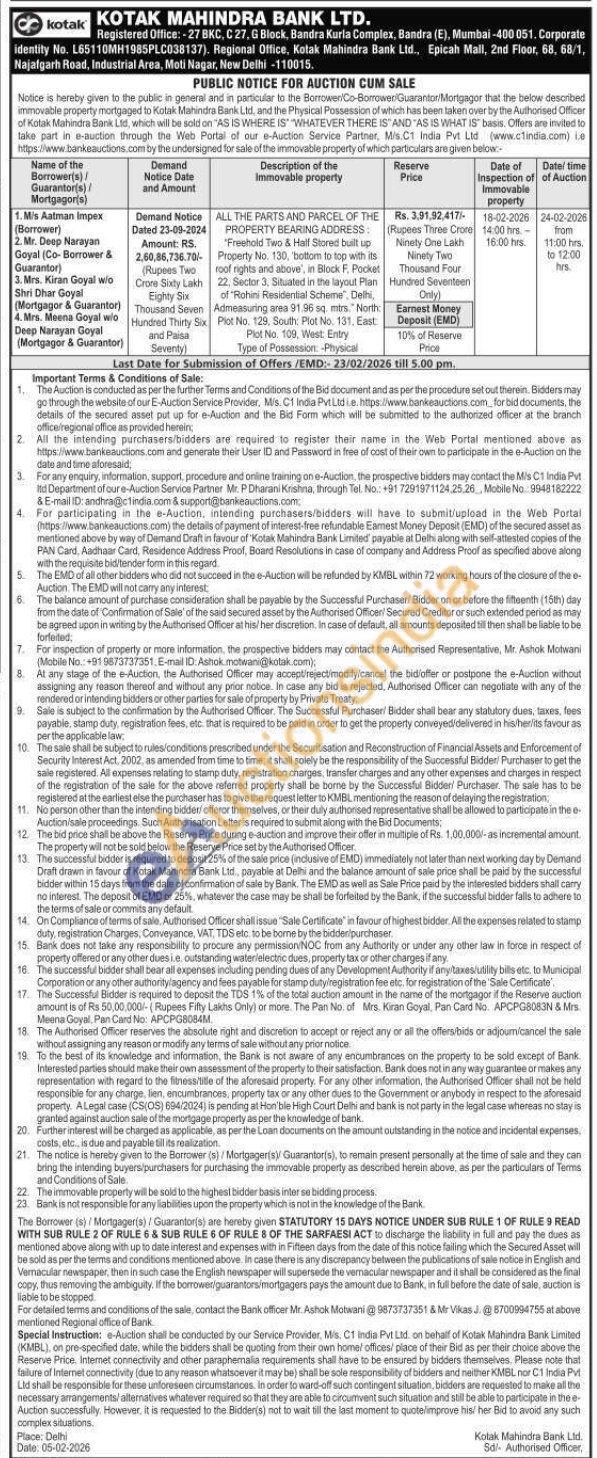 ALL THE PARTS AND PARCEL OF THE PROPERTY BEARING ADDRESS: "Freehold Two & Half Stored built up Property No. 130, bottom to top with its roof rights and above, in Block F. Pocket 22, Sector 3. Situated in the layout Plan of "Rohini Residential Scheme". Delhi, Admeasuring area 91.96 sq. mtrs. North Plot No. 129, South: Plot No. 131. East: Plot No. 109, West: Entry