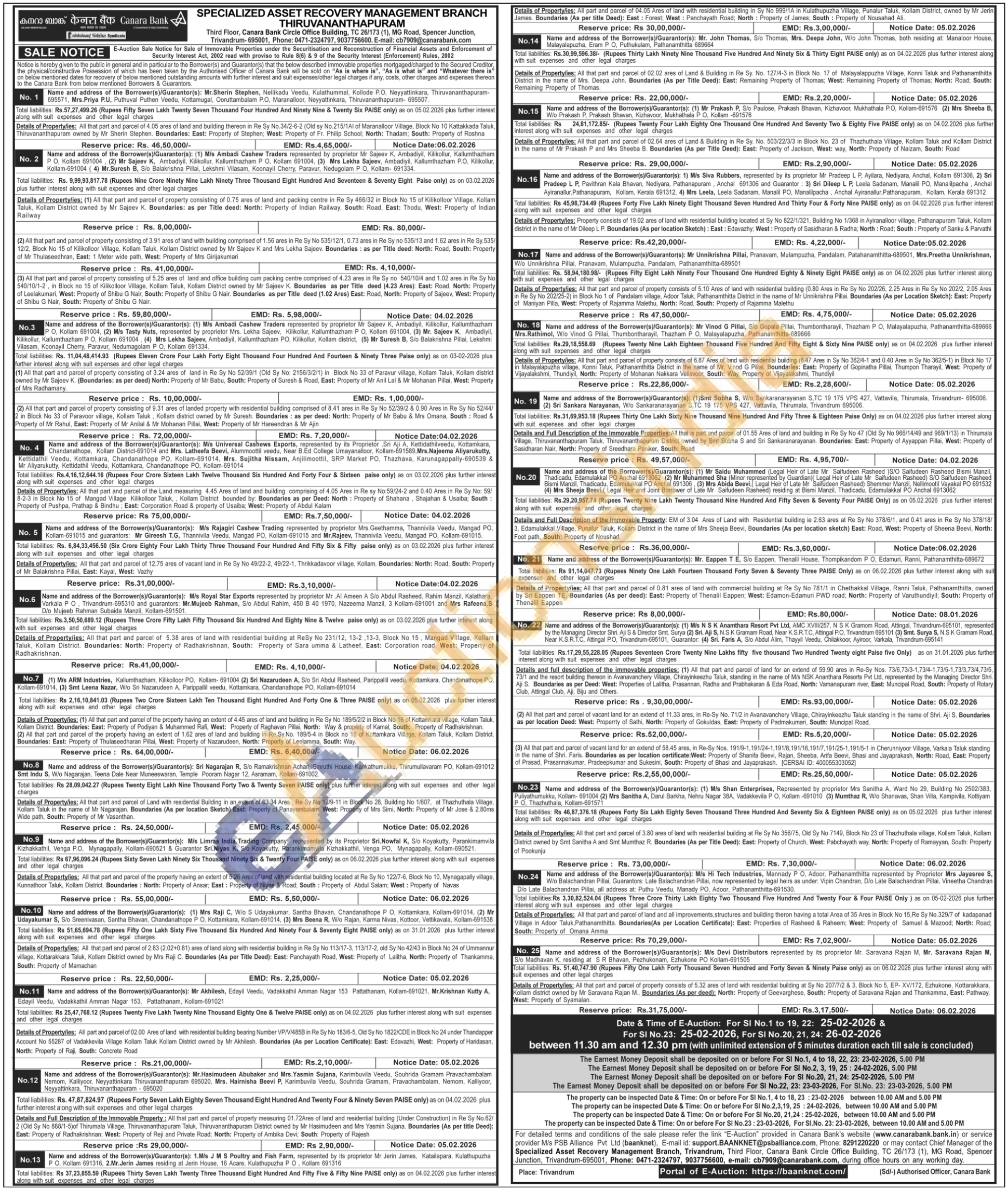 Contact No : Phone: 0471-2324797, 9037756600, e-mail: cb7909@canarabank.com