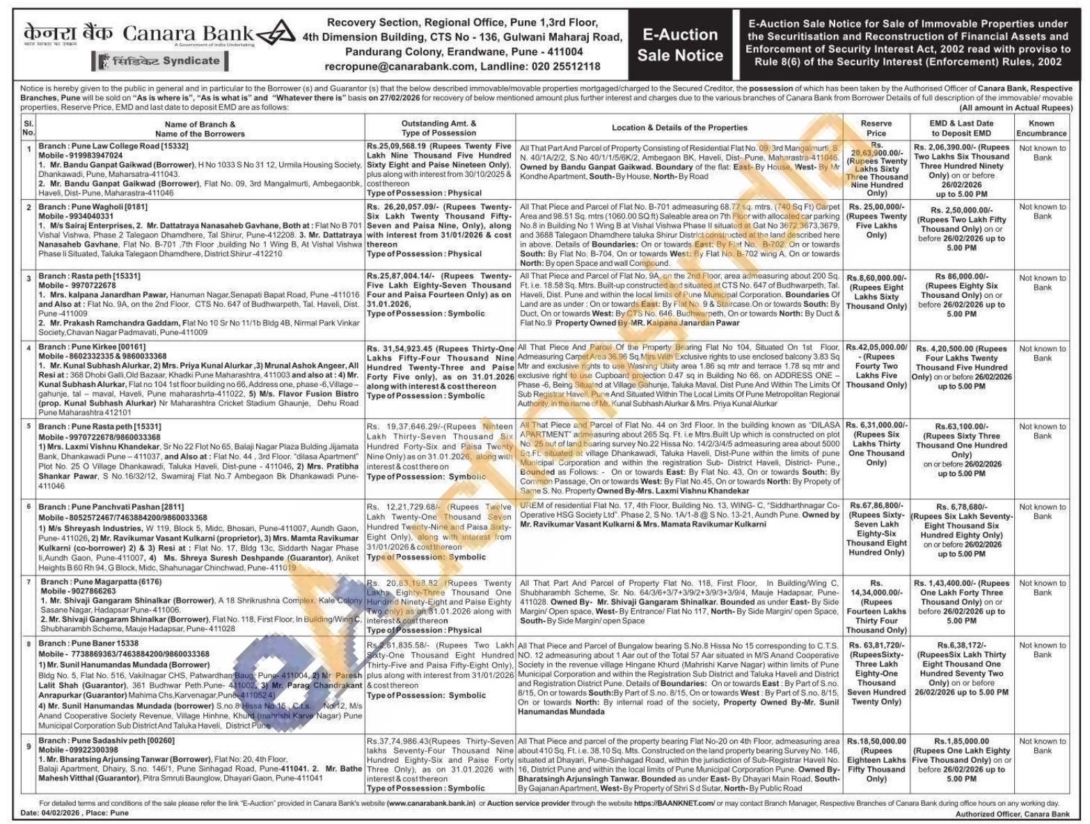 All That Piece and parcel of the property bearing Flat No-20 on 4th Floor, admeasuring area about 410 Sq. Ft. i.e. 38,10 Sq. Mts. Constructed on the land property bearing Survey No. 146, situated at Dhayari, Pune-Sinhagad Road, within the jurisdiction of Sub-Registrar Haveli No. 16. District Pune and within the local limits of Pune Municipal Corporation Pune. Owned By-Bharatsingh Arjunsingh Tanwar. Bounded as under East-By Dhayari Main Road, South-By Gajanan Apartment, West-By Property of Shri Sd Sutar, North-By Public Road
