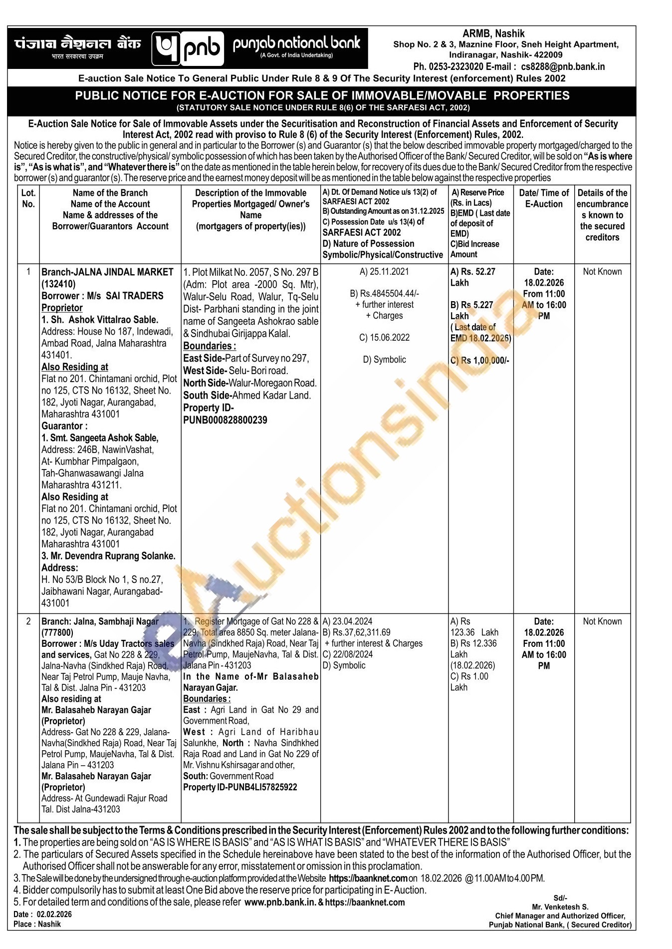 1. Register Mortgage of Gat No 228 & 229, Total area 8850 Sq. meter Jalana-Navha (Sindkhed Raja) Road, Near Taj Petrol Pump, MaujeNavha, Tal & Dist. Jalana Pin-431203 In the Name of-Mr Balasaheb Narayan Gajar. Boundaries: East Agri Land in Gat No 29 and Government Road, West Agri Land of Haribhau Salunkhe, North Navha Sindhkhed Raja Road and Land in Gat No 229 of Mr. Vishnu Kshirsagar and other, South: Government Road Property ID-PUNB4L157825922