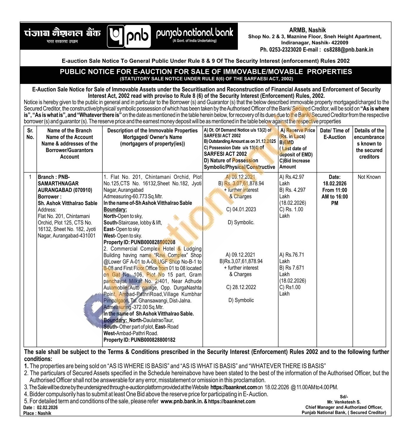 In the name of Sh Ashok Vitthalrao Sable. Boundary: North-Daulatrao Taur, South-Other part of plot, East-Road West-Ambad-Pathri Road.