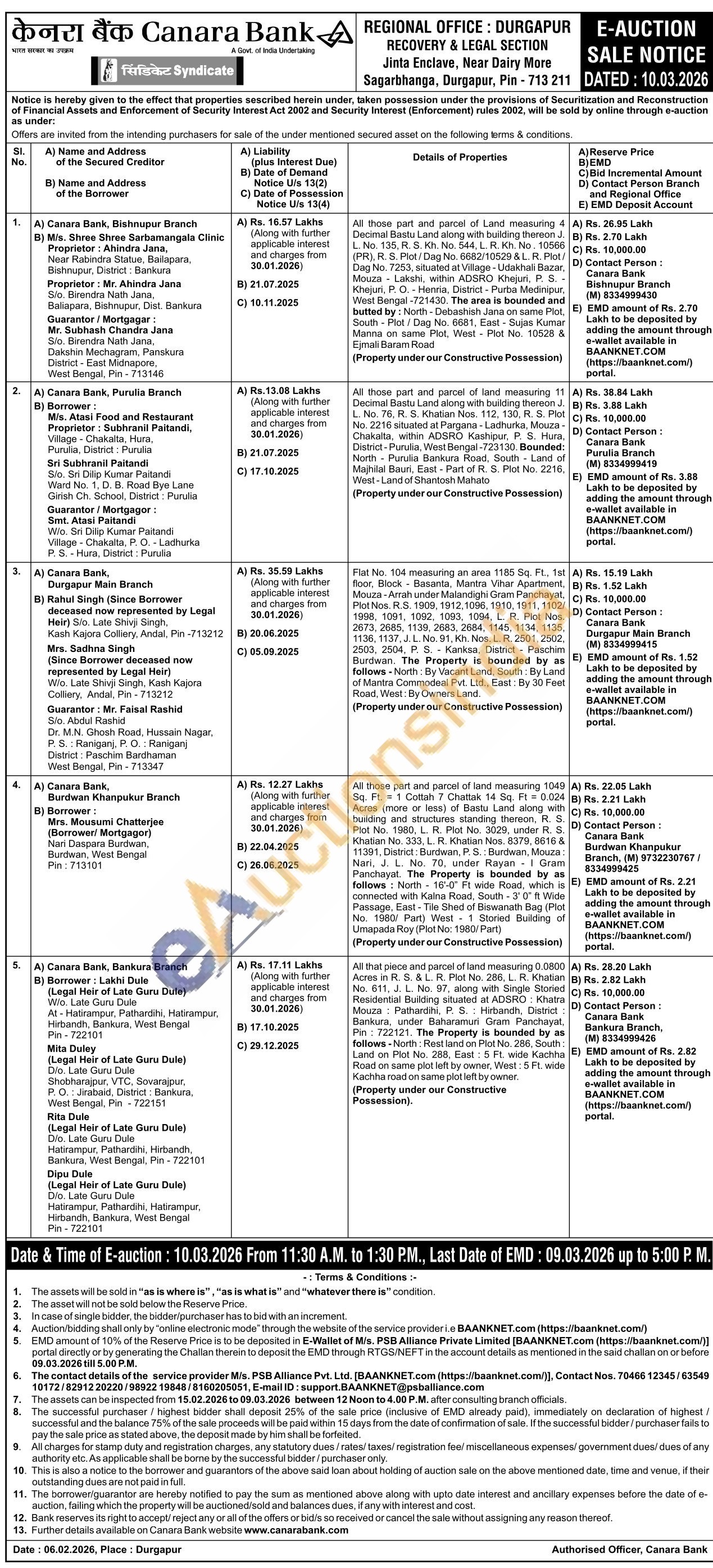 All those part and parcel of Land measuring 4 Decimal Bastu Land along with building thereon J. L. No. 135, R. S. Kh. No. 544, L. R. Kh. No. 10566 (PR), R. S. Plot/Dag No. 6682/10529 & L. R. Plot/Dag No. 7253, situated at Village - Udakhali Bazar, Mouza Lakshi, within ADSRO Khejuri, P. S Khejuri, P. O. Henria, District - Purba Medinipur, West Bengal -721430. The area is bounded and butted by: North - Debashish Jana on same Plot, South Plot/Dag No. 6681, East-Sujas Kumar Manna on same Plot, West Plot No. 10528 & Ejmali Baram Road