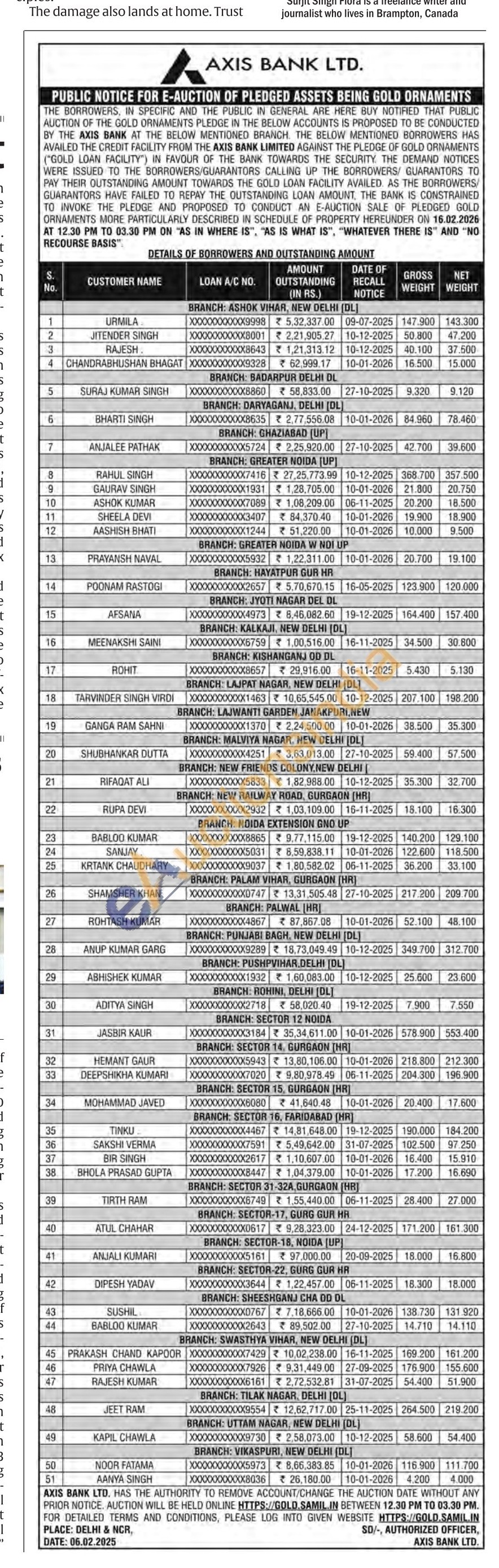 Axis Bank Gold Auctions Auction in Chennai
