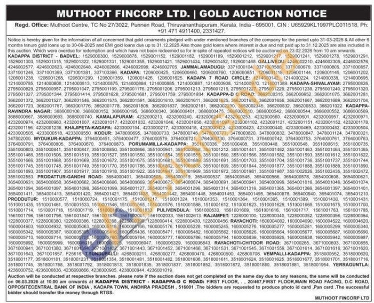 Muthoot Fincorp Ltd Gold Auctions Auction in Thiruvananthapuram